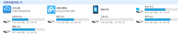 在 windows 平台下,打开“计算机”,我们看到的是一个个的驱动器盘符: