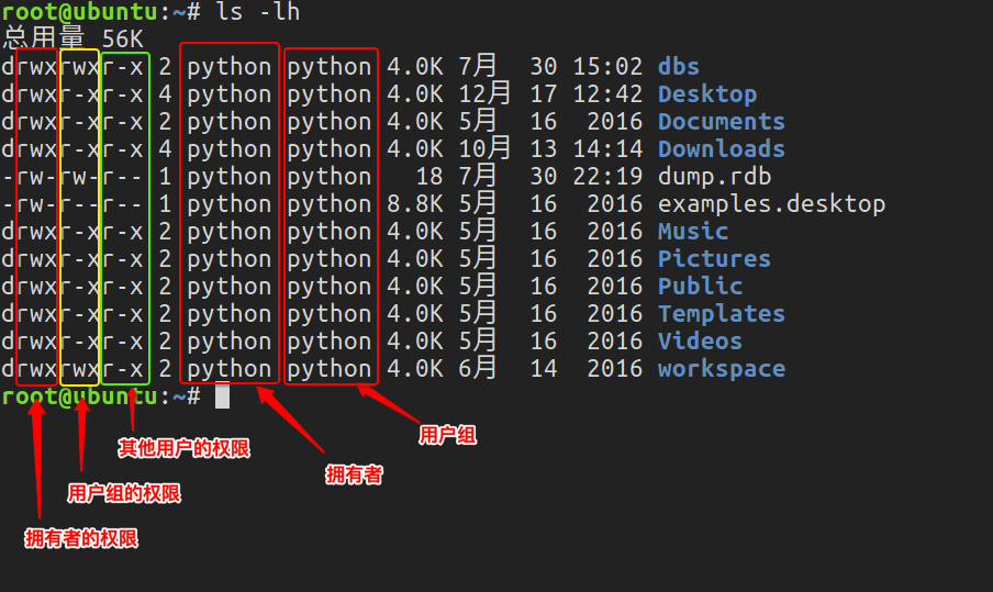 - 可执行权限(x) 对文件而言,具有执行文件的权限;对目录了来说该用户具有进入目录的权限。