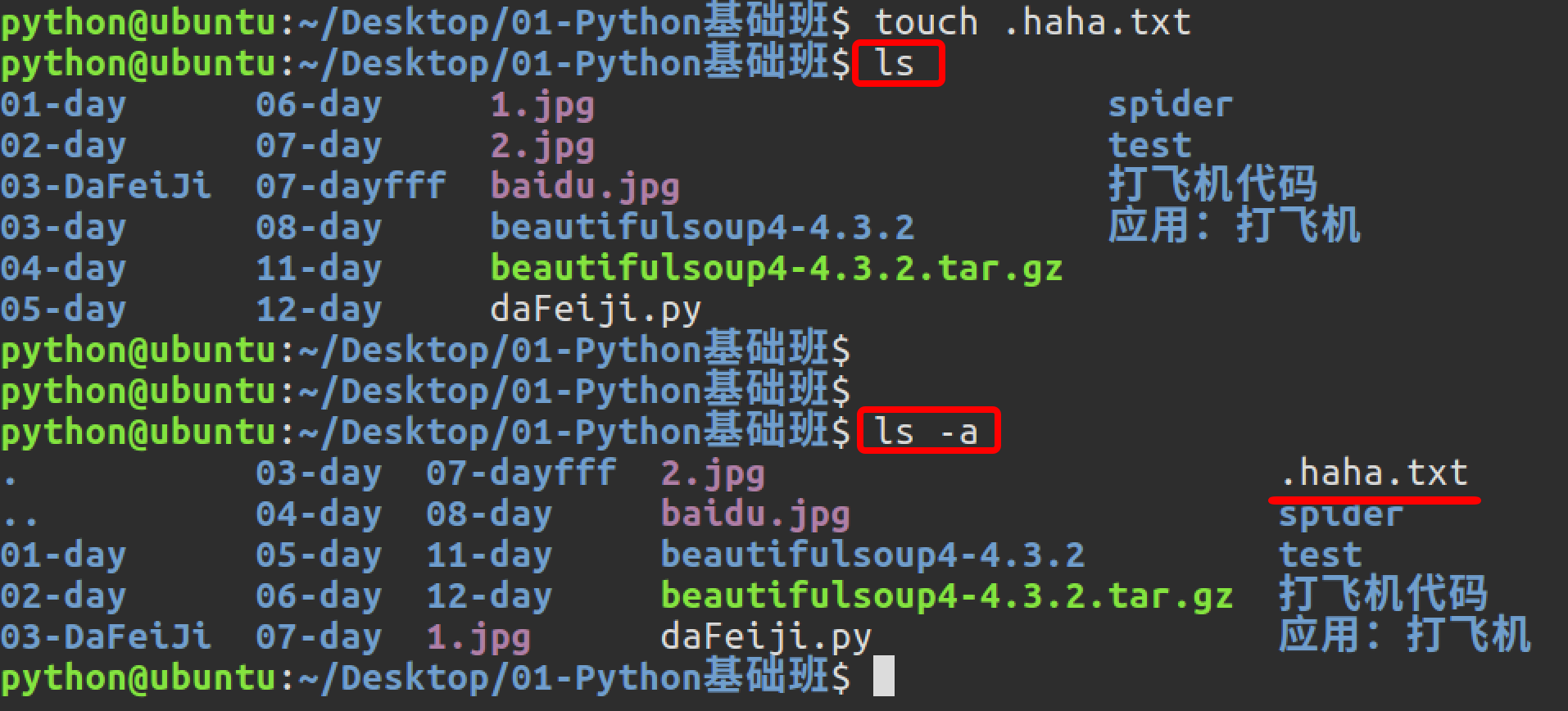| -a | 显示指定目录下所有子目录与文件,包括隐藏文件 |