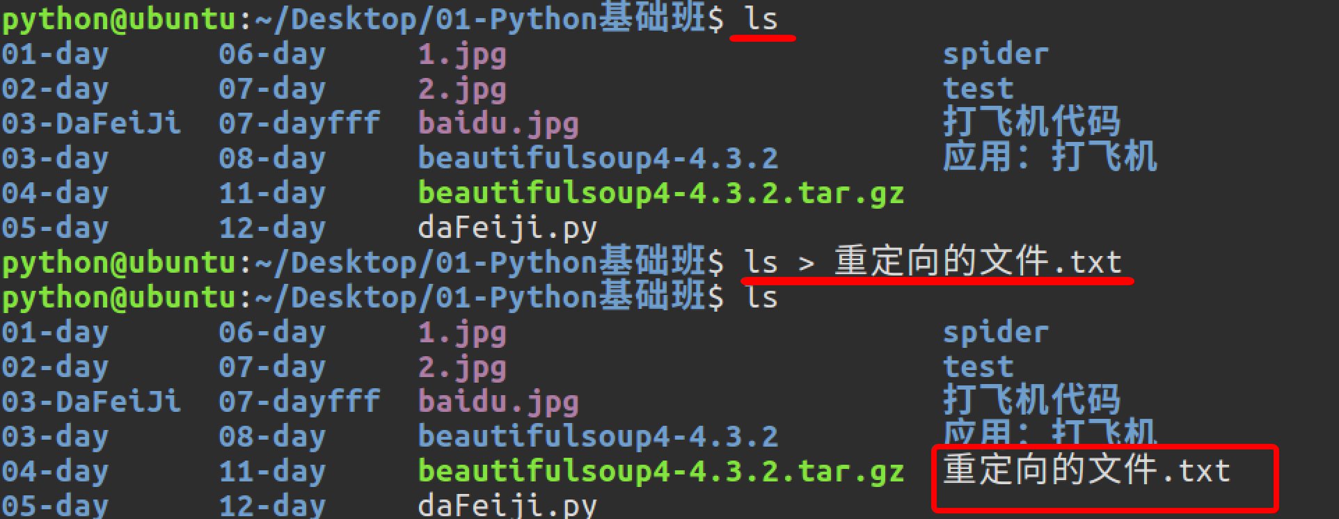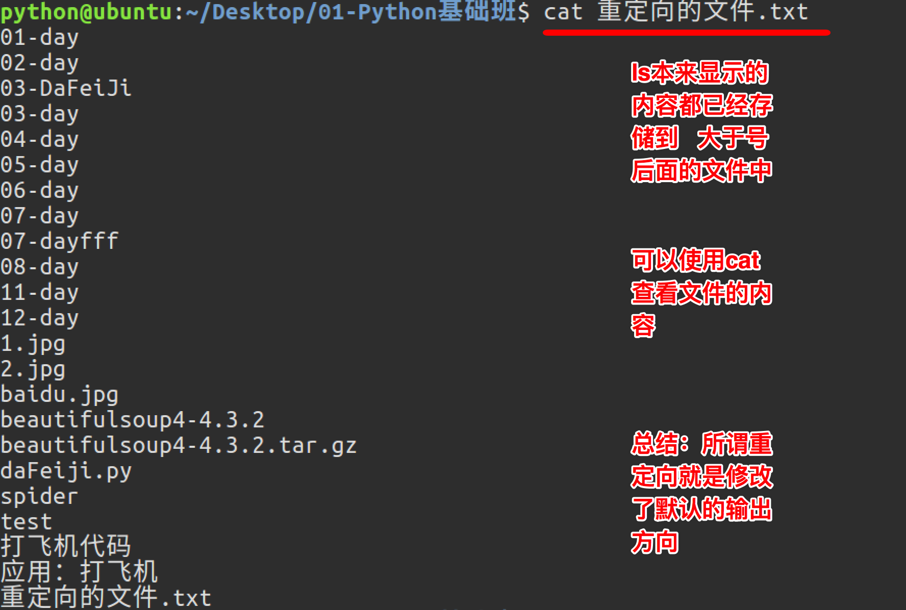 Linux允许将命令执行结果重定向到一个文件,本应显示在终端上的内容保存到指定文件中。