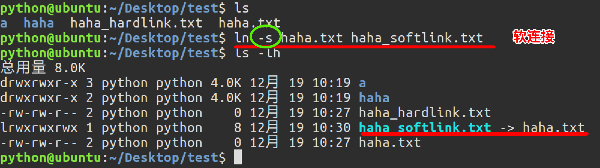 如果没有-s选项代表建立一个硬链接文件,两个文件占用相同大小的硬盘空间,即使删除了源文件,链接文件还是存在,所以-s选项是更常见的形式。