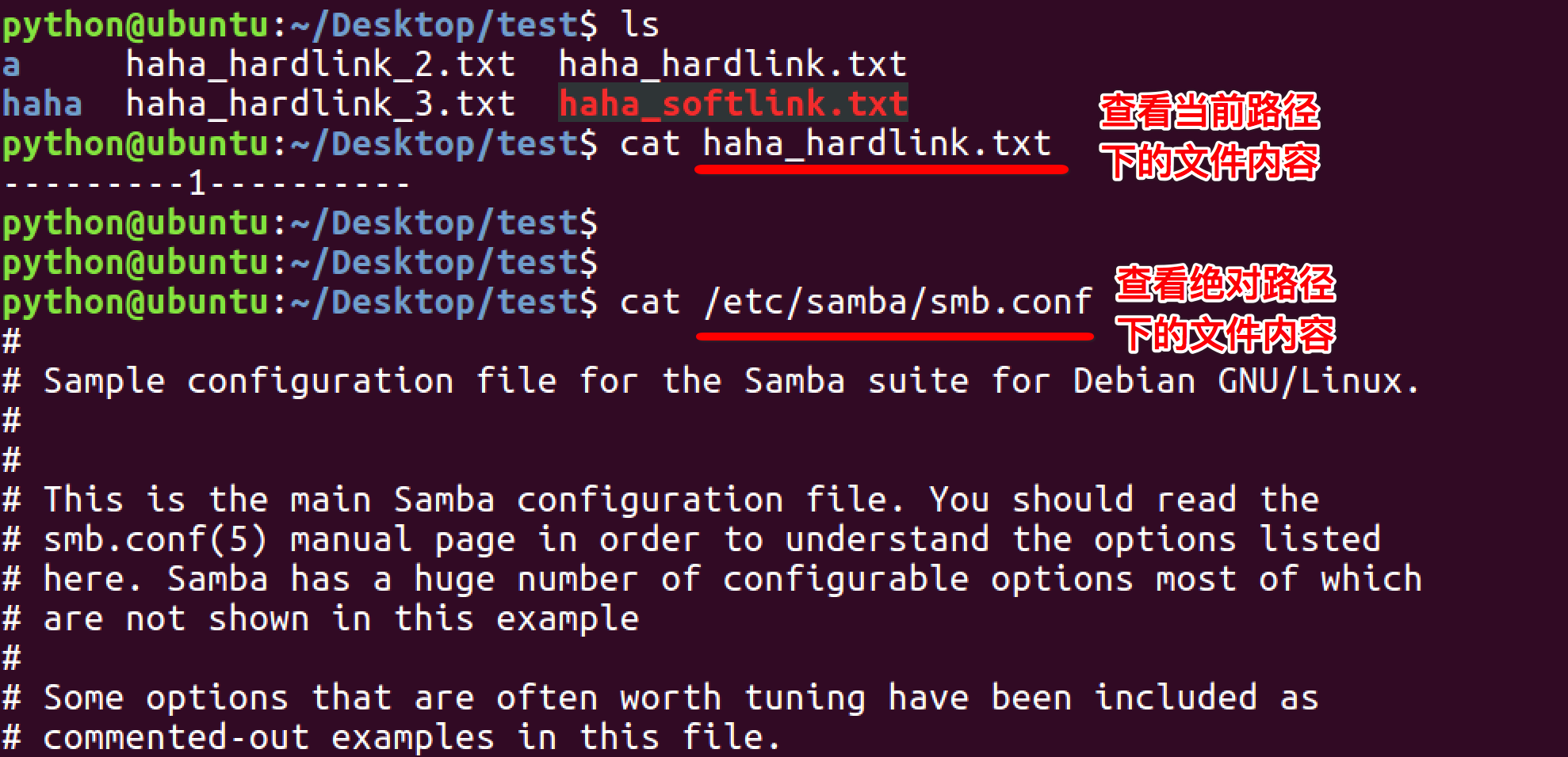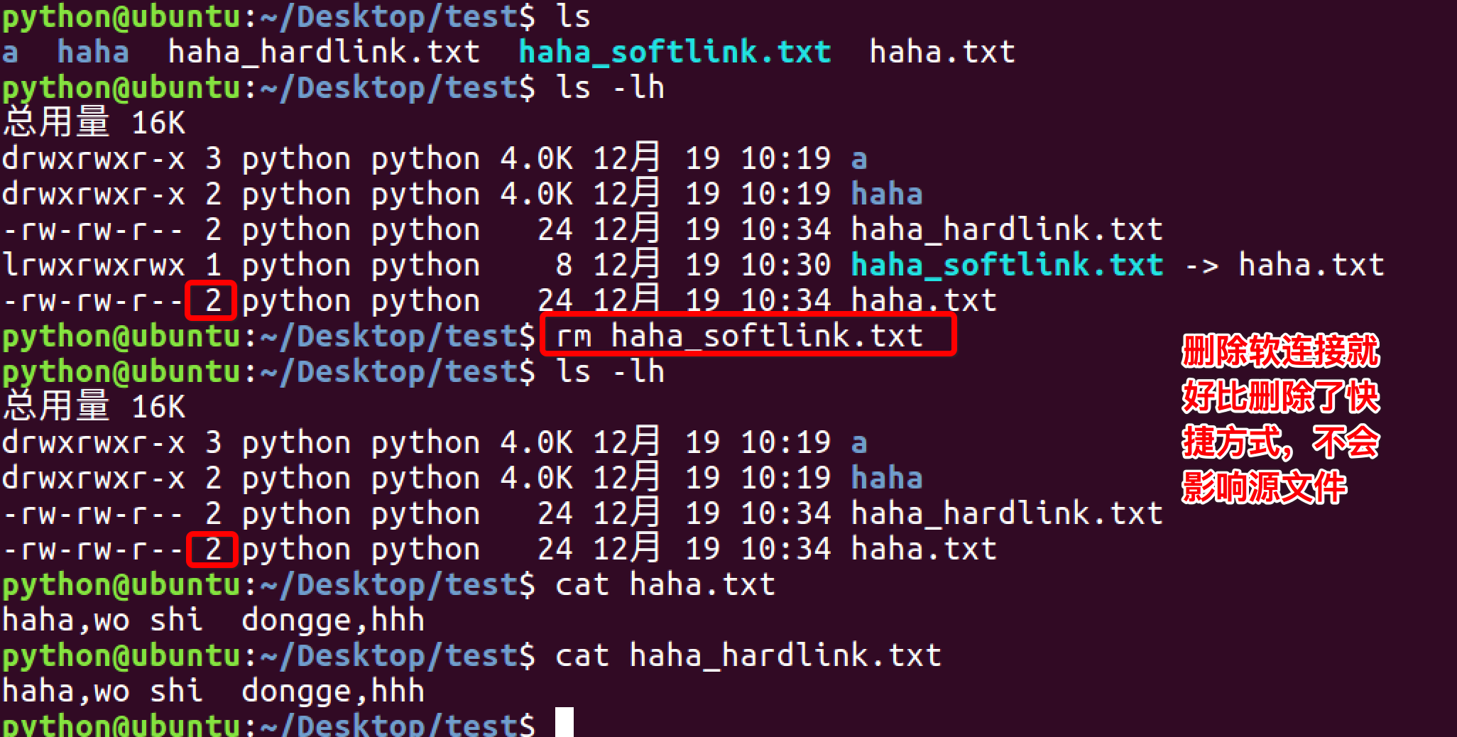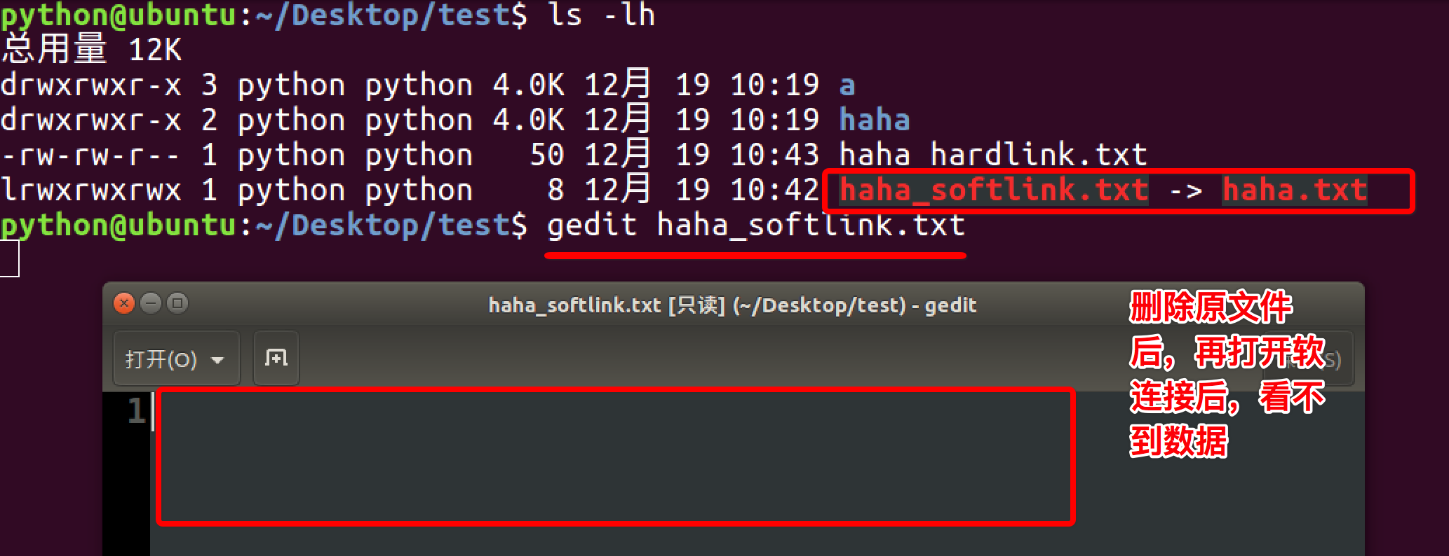 注意:如果软链接文件和源文件不在同一个目录,源文件要使用绝对路径,不能使用相对路径。