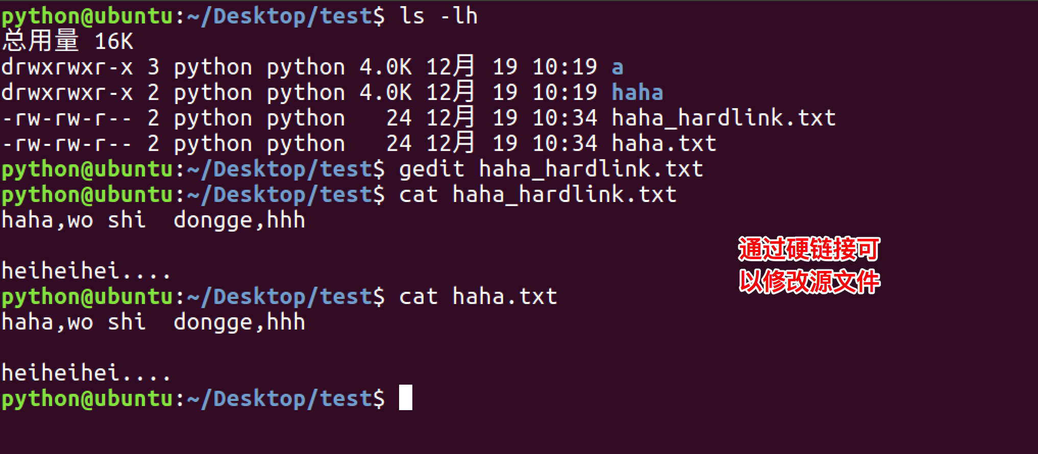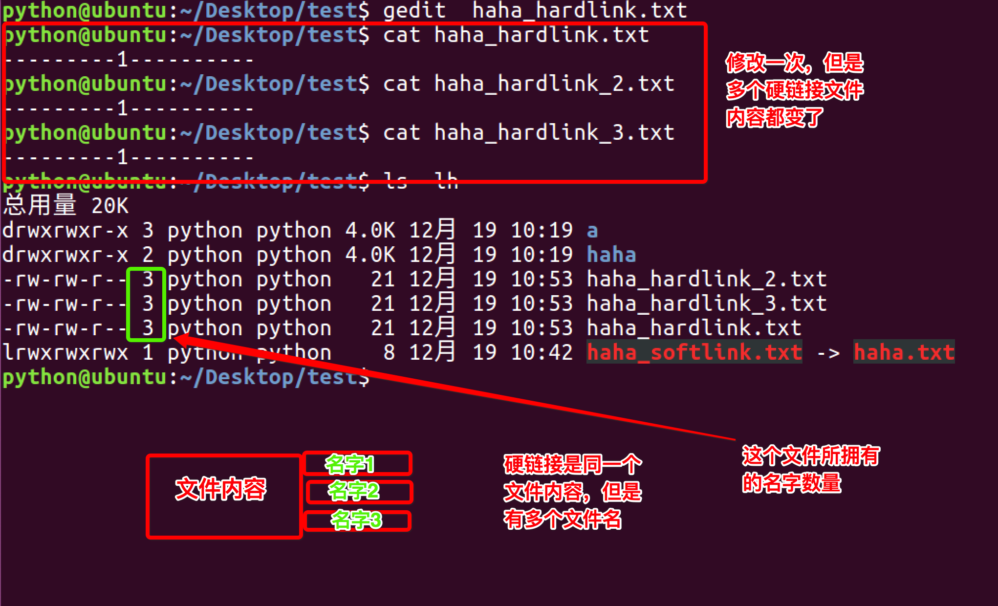 硬链接:硬链接只能链接普通文件,不能链接目录。