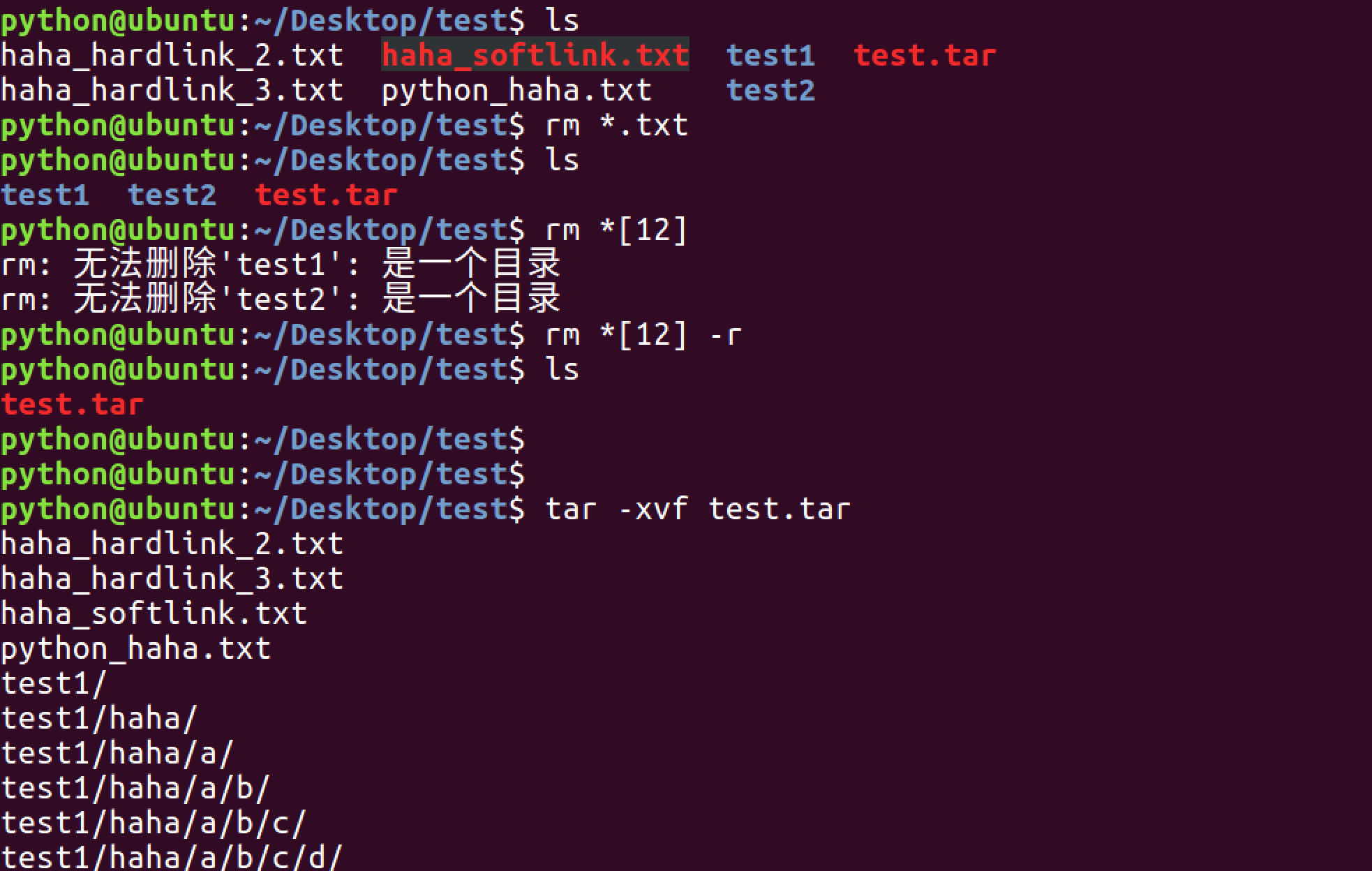 | ls a-f | 查找文件名为a-f的文件,当“-”处于方括号之外失去通配符的作用 |