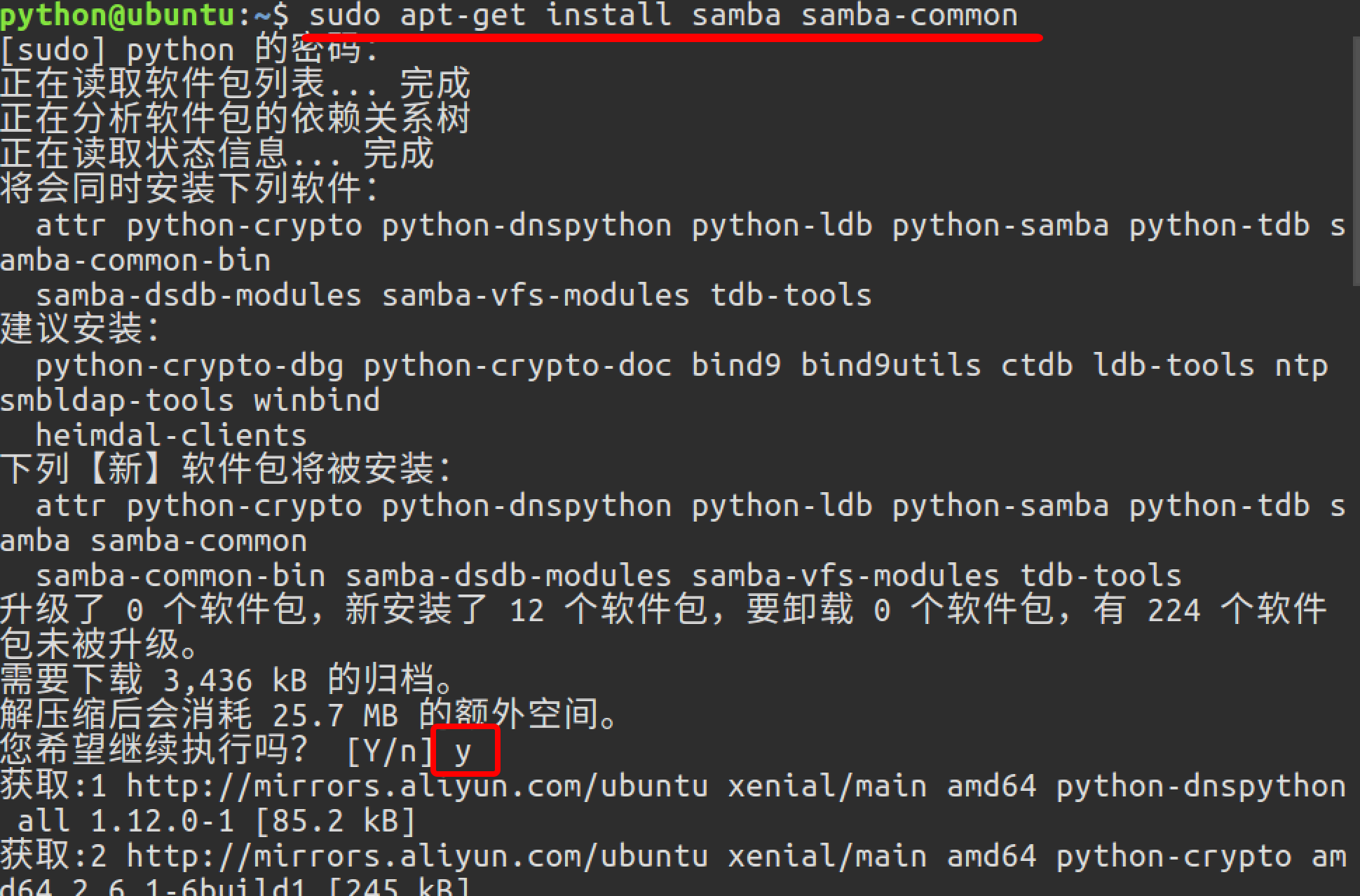 使用apt命令安装samba