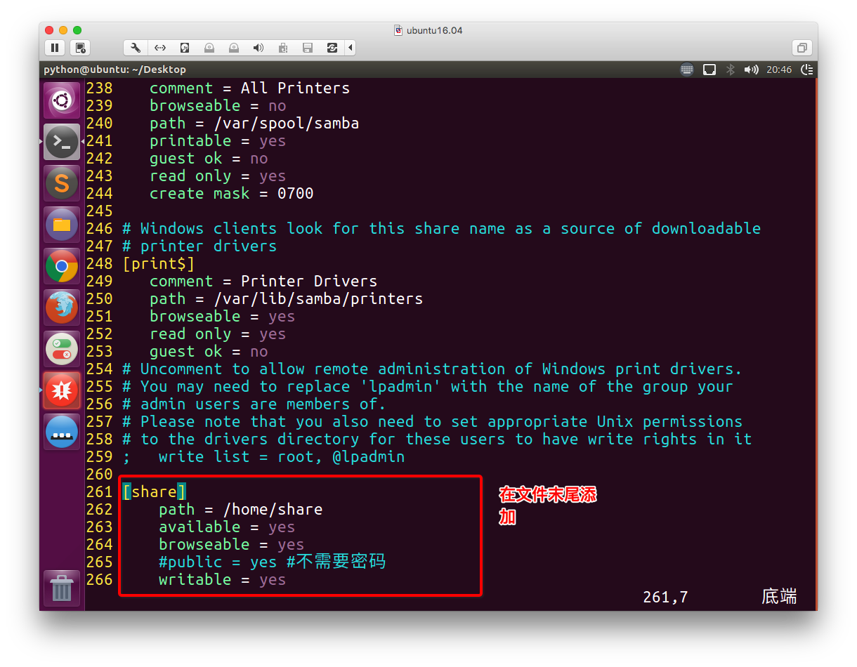 修改samba的配置文件: